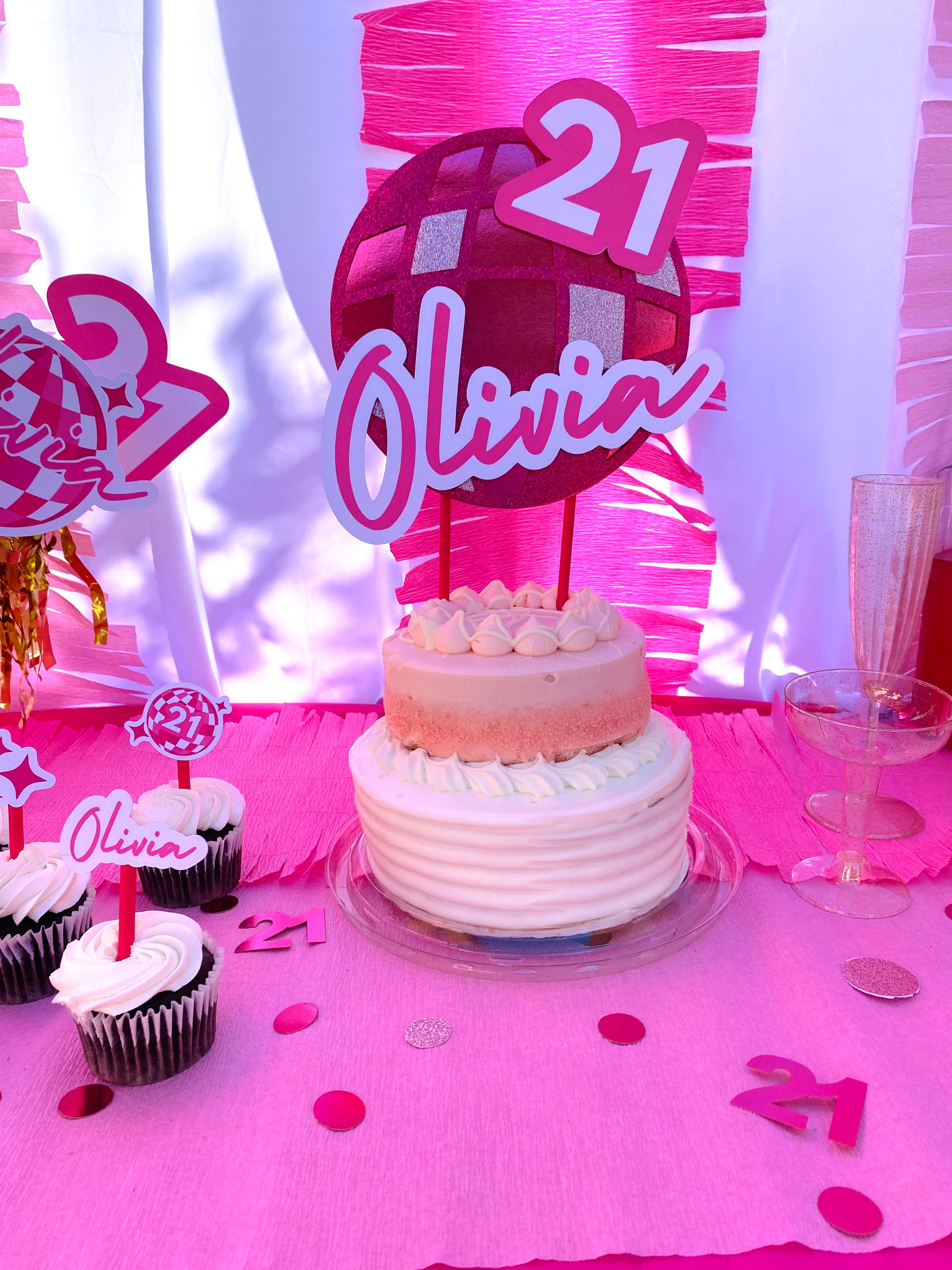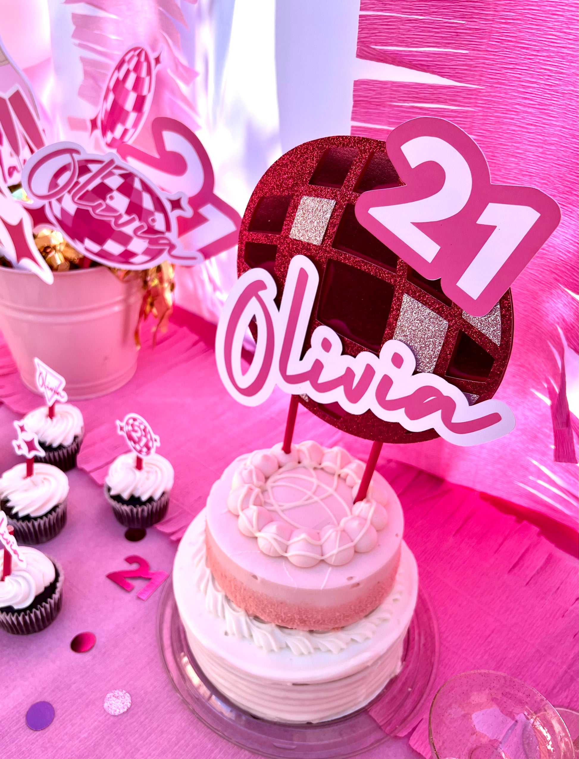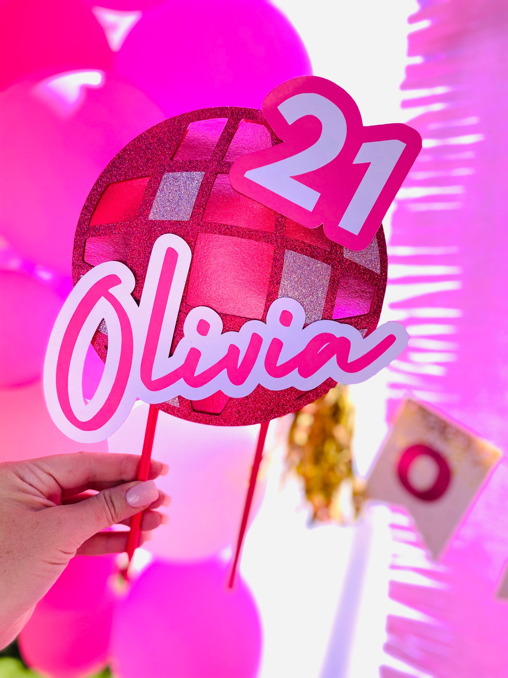 CUSTOM NAME PINK DISCO BIRTHDAY CAKE TOPPER